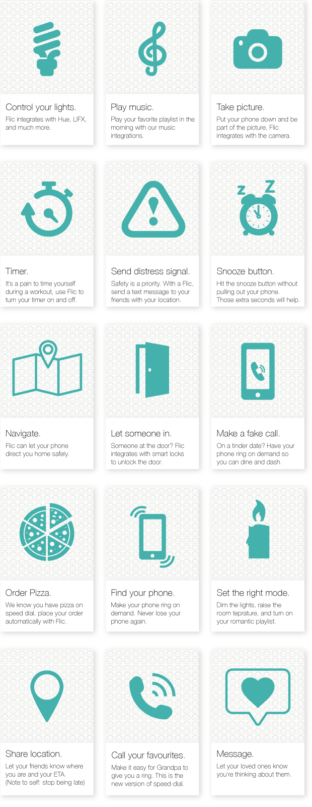 Absolutely no need to touch your phone, Flic creates a shortcut to your favorite actions. With one Flic, you can create a shortcut to call a cab, text your loved ones of your location if you’re in distress, or just turn the lights on. Flic can do so much more too...